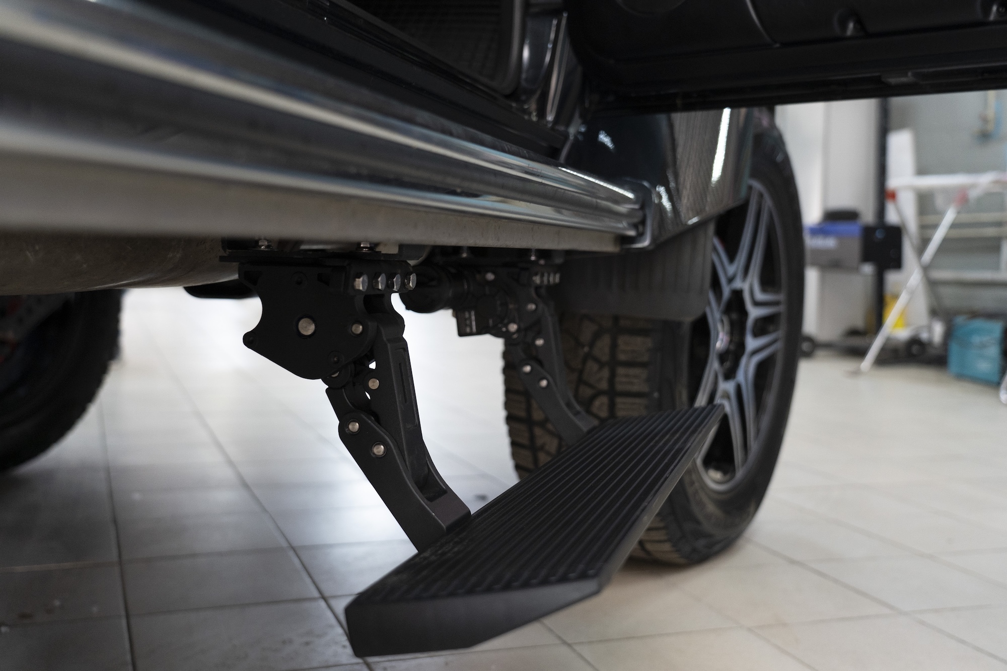 ATS Electric Running Boards for the Mercedes G-Class are a high-tech solution designed to provide maximum comfort and convenience when entering the vehicle. The running boards automatically extend when the doors open and retract when closed, ensuring intuitive and effortless use.