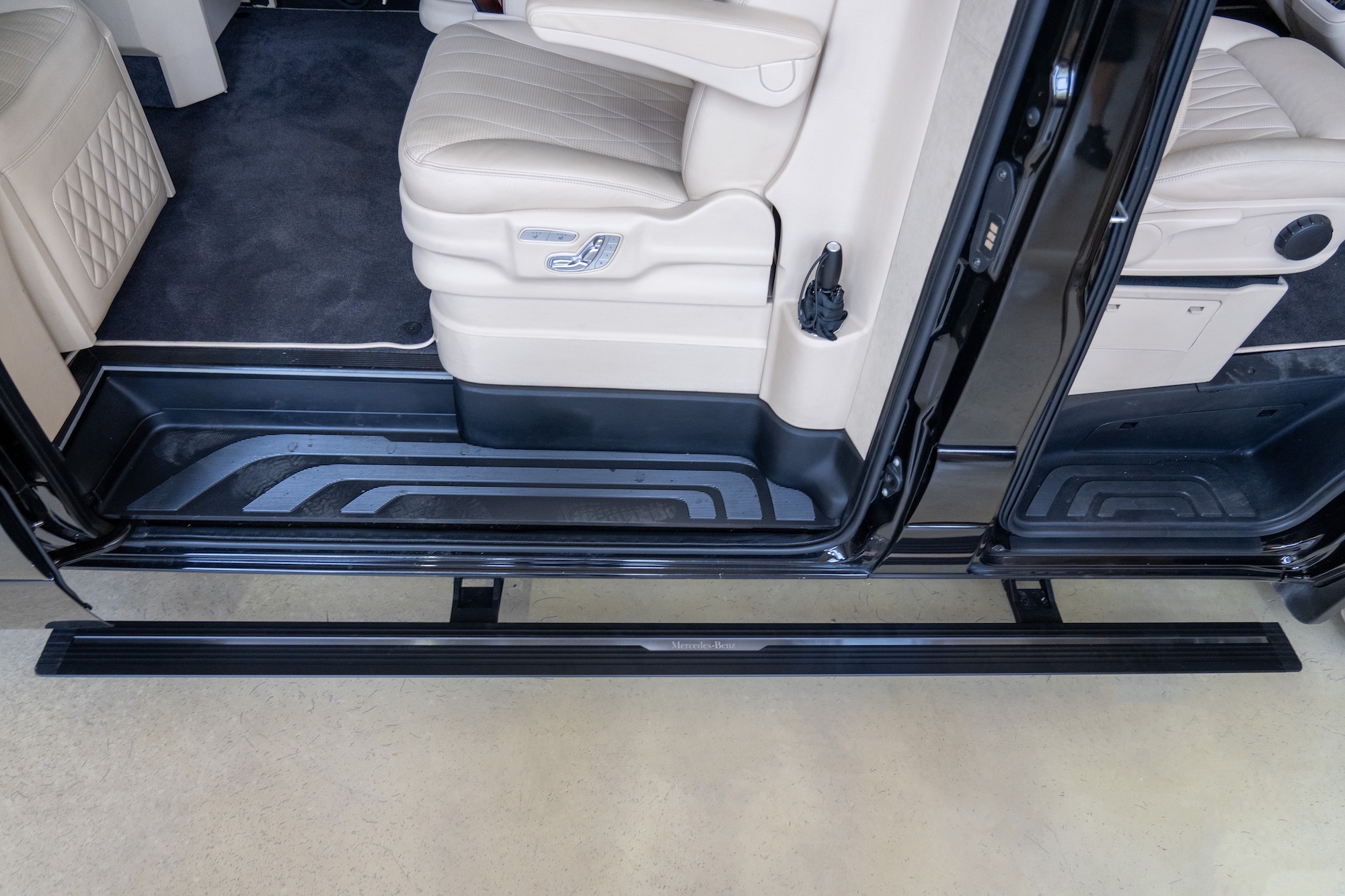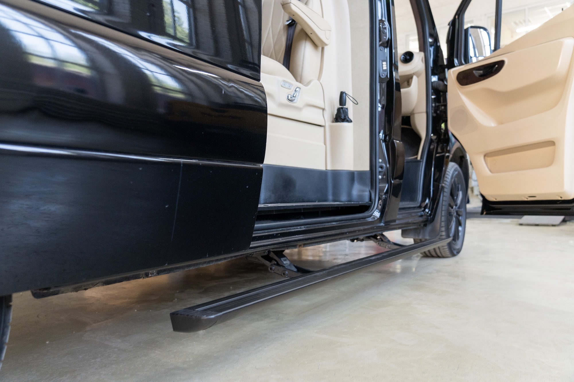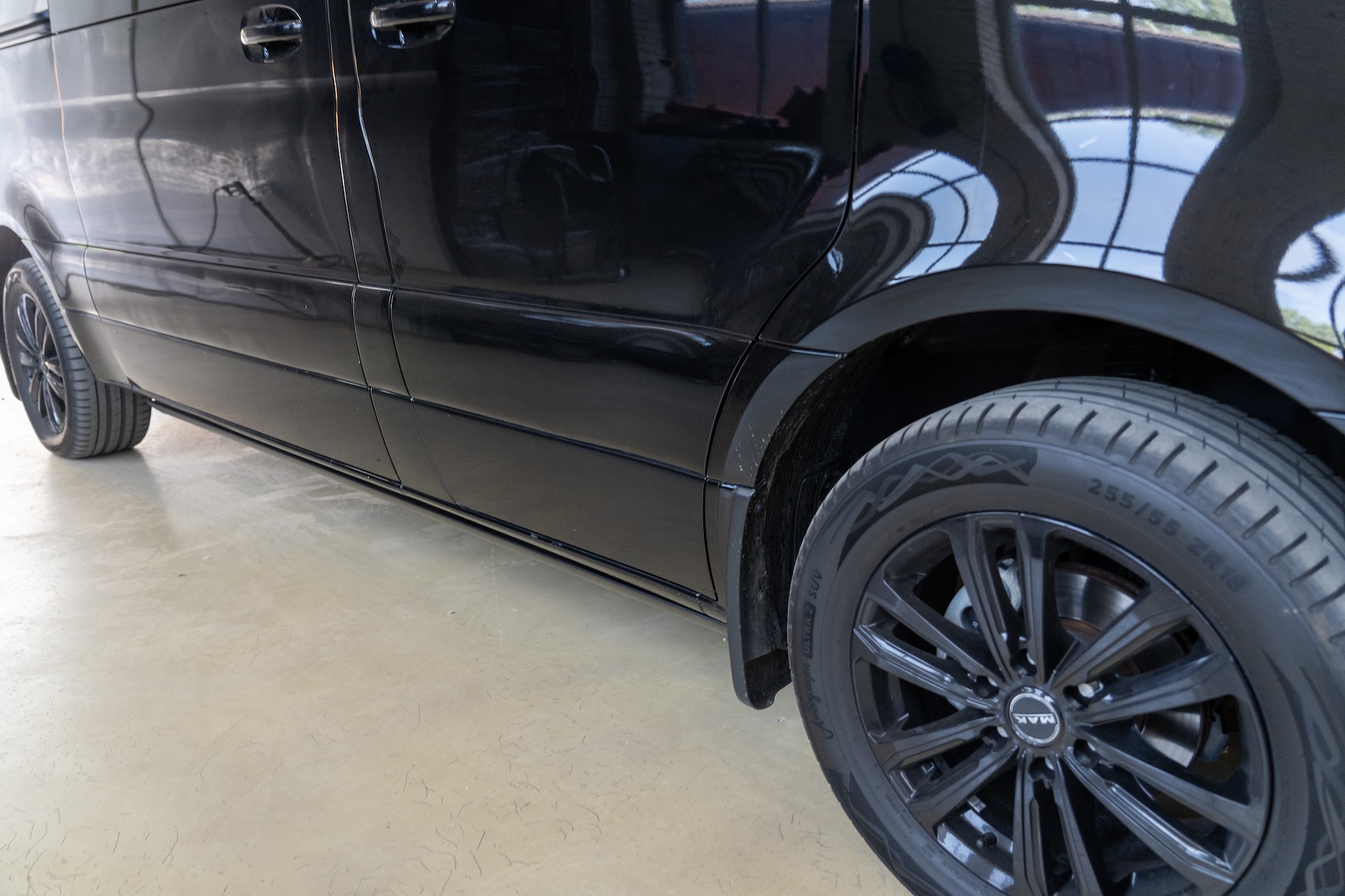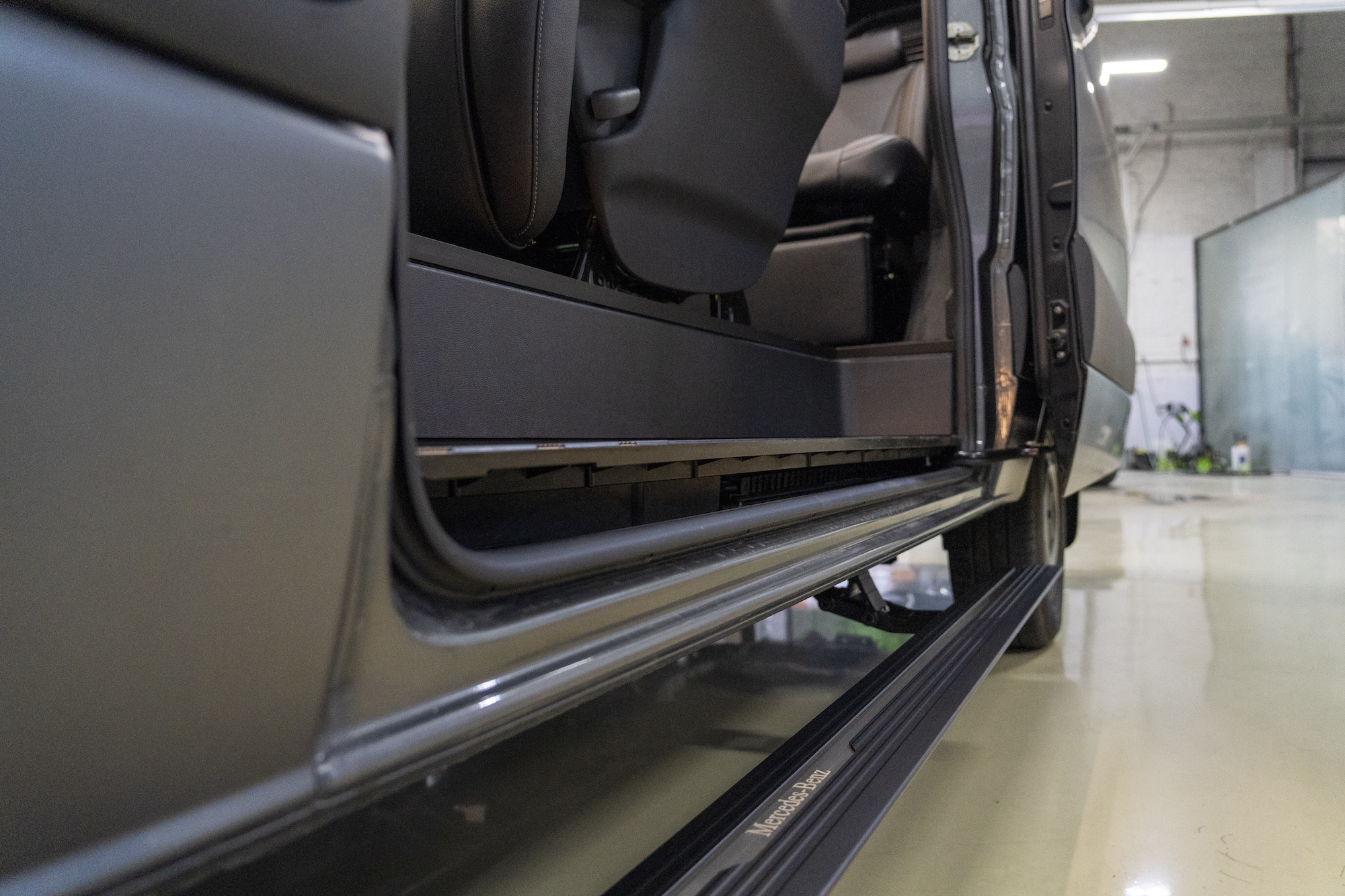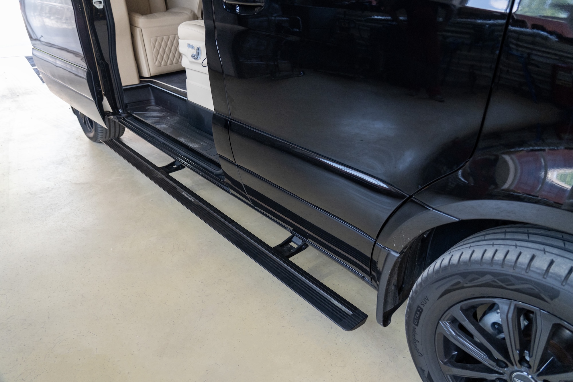 Premium Electric Side Steps // For this luxury SUV build, the Gangsta Paradise automatic running boards serve as the ultimate accessibility upgrade, proving that style and function can coexist seamlessly. Outfitted with integrated LED lighting, these steps were custom-configured at the client's request, who approached us after market options failed to meet both durability and design standards. The goal was to create steps that looked OEM+ while providing superior weather resistance. To complete the transformation, custom rubber tread inserts were added, allowing surefooted entry in all conditions—yes, even mountain terrain. The result is a perfect fusion of utility and urban sophistication.