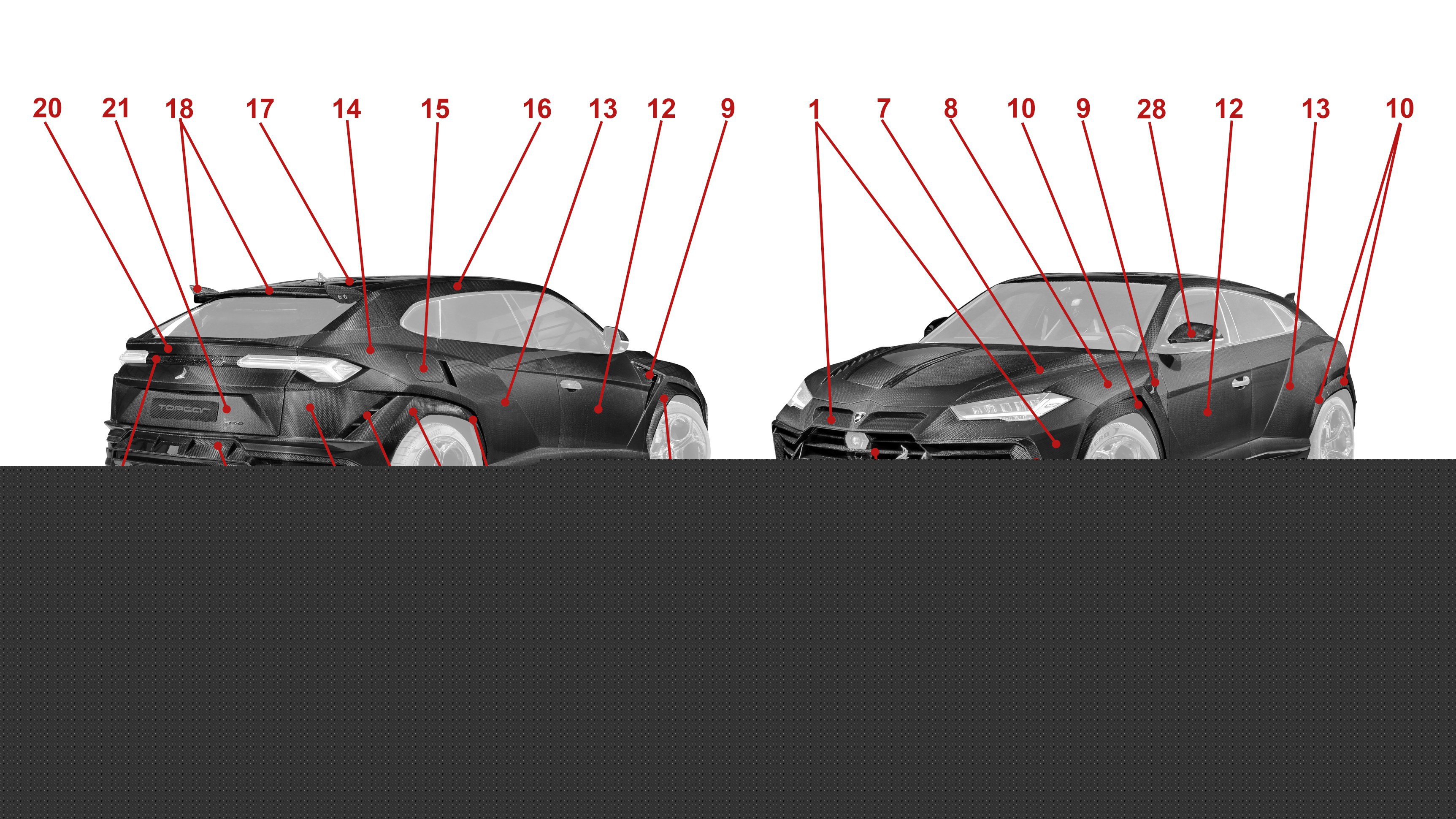 18. Roof spoiler, 3 pcs., carbon