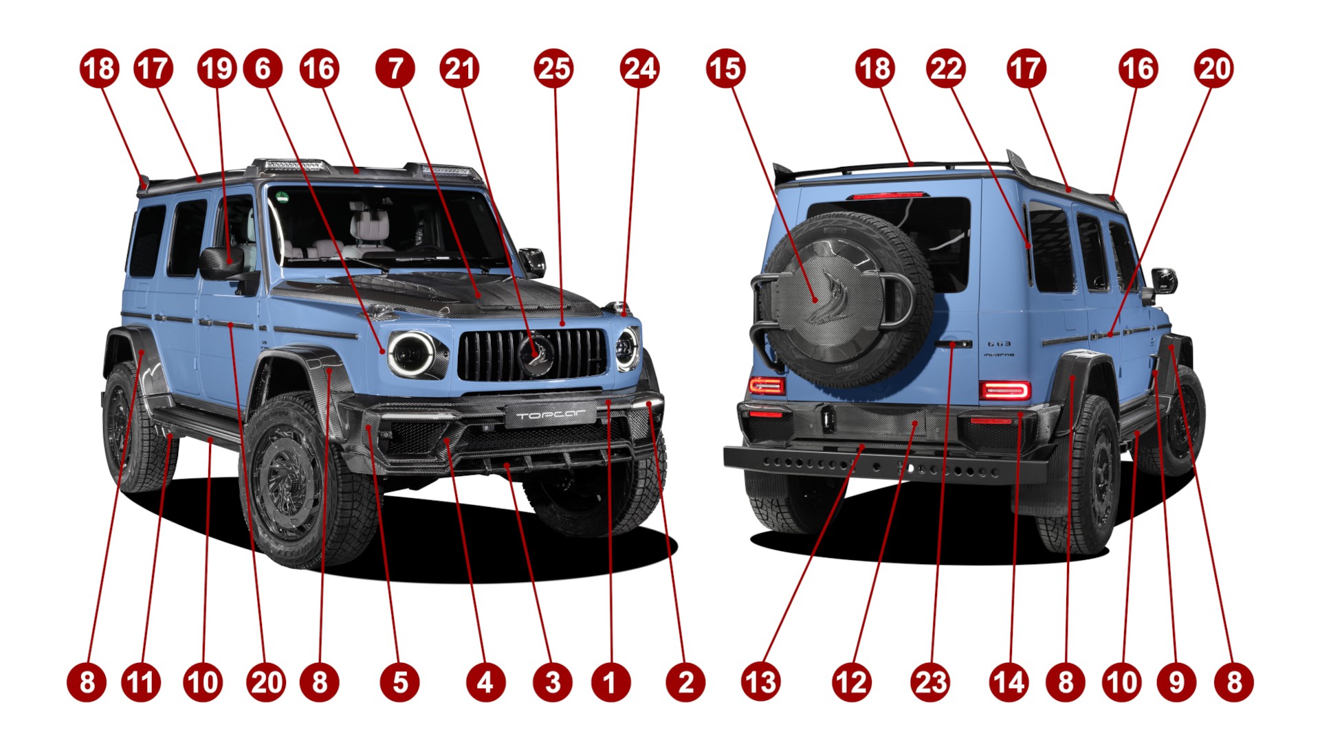 Mercedes G63 4x4 Inferno, carbon kit Twill 2x2 - Options