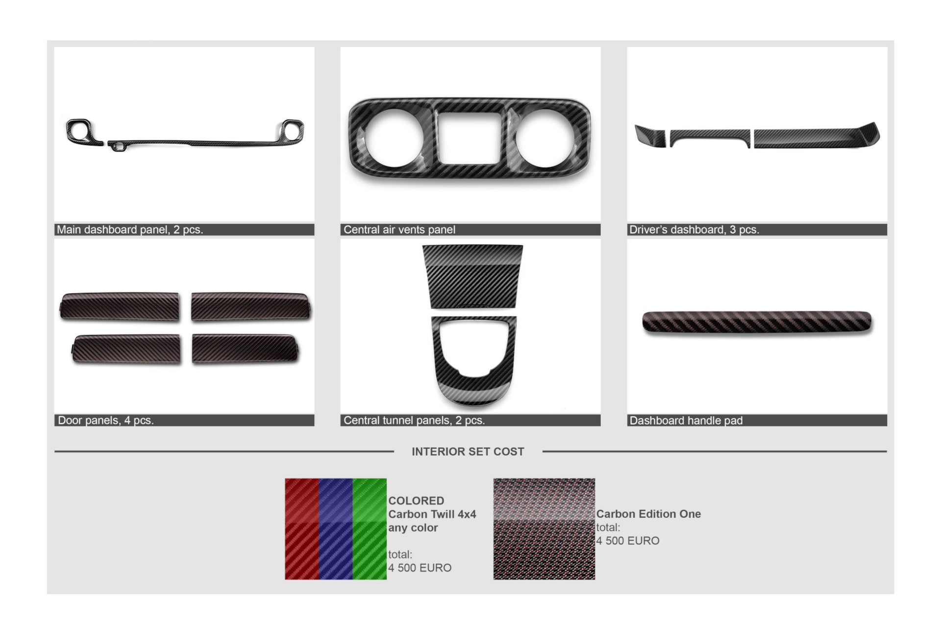 Interior parts set (Colored Carbon Twill 4x4 or Carbon Edition one)